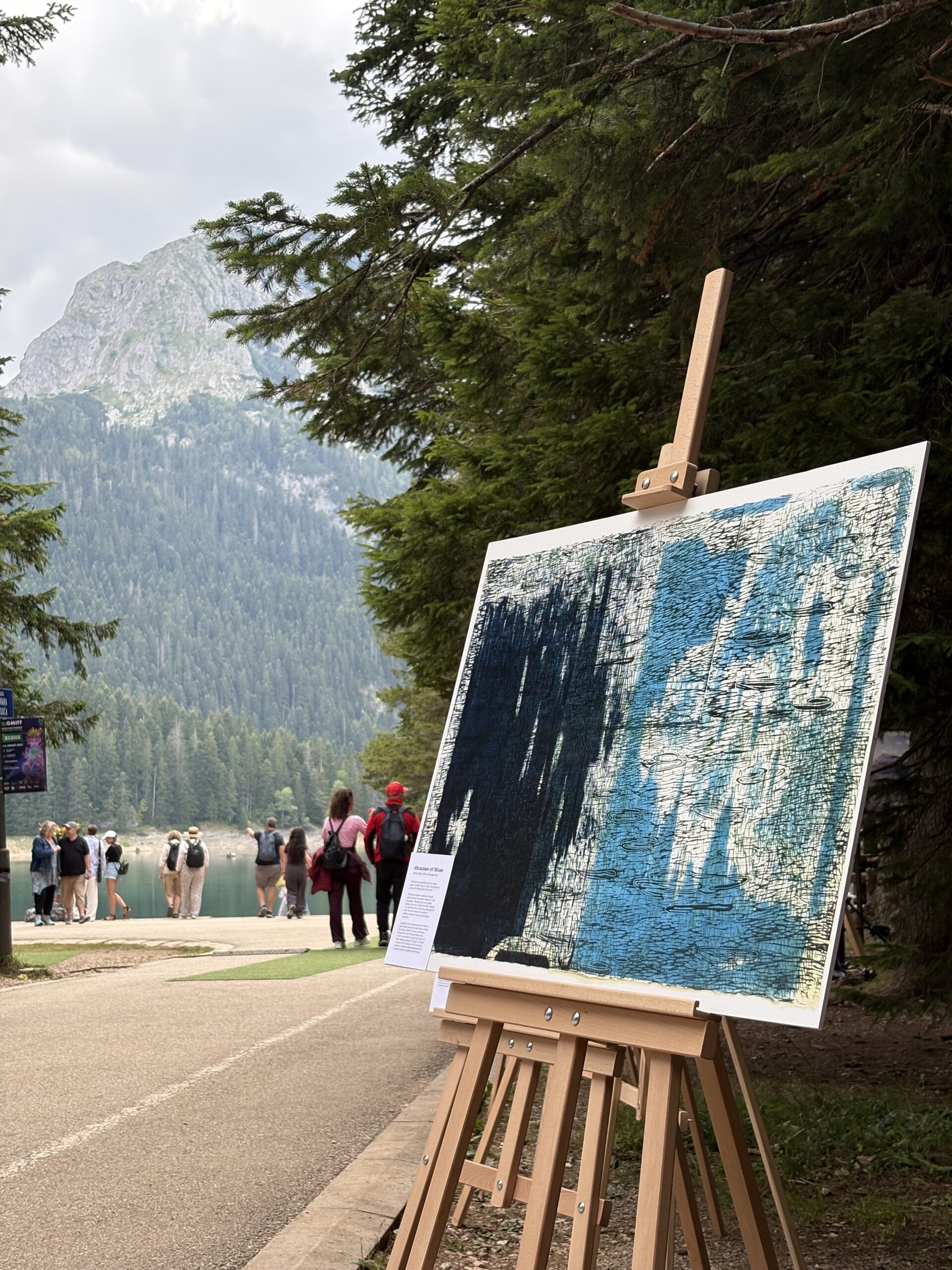 The exhibition opened at Montenegro’s stunning Black Lake during the Green Montenegro Film Festival (August 1-3, 2025). And wow, what a setting! Three days of art and environmental films against the incredible backdrop of Durmitor National Park.